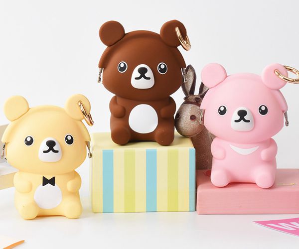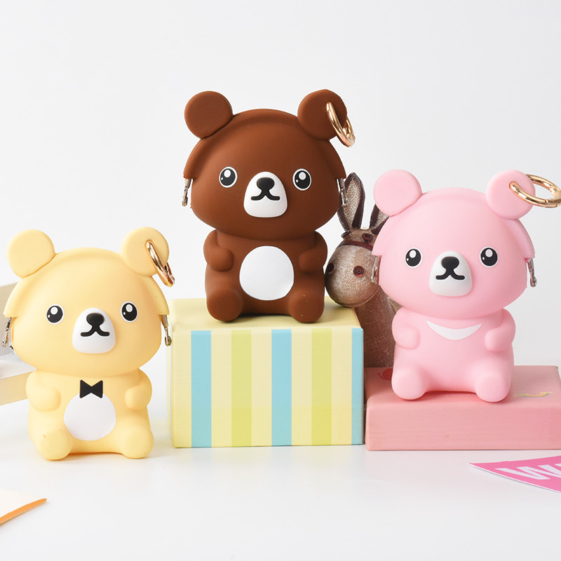 小熊拉鏈掛扣硅膠包,滴膠工藝硅膠錢(qián)包
